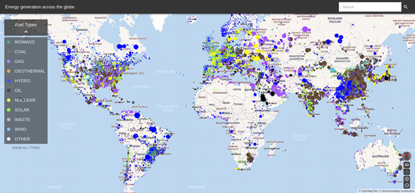 Nach einem intensiven Austausch über Interessen und Ideen, sind wir auf das Global Powerplants Database des World-Resources-Instituts gestoßen. Hierbei handelt es sich um eine große Datenbank mit Informationen über Kraftwerke auf der ganzen Welt. In Zeiten, in denen die Energieerzeugung im Mittelpunkt der globalen Debatte steht, schien uns die Erstellung einer interaktiven Karte, die einen Überblick über den Stand der weltweiten Energieerzeugung geben würde, sehr interessant. Also nahmen wir die Daten und machten uns an die Arbeit.
