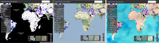 Eine weitere Kernfunktionalität unserer App ist die Visualisierung der Daten nach eigenschaftsspezifischen Werten. In der default Konfiguration sehen alle Kraftwerke gleich aus. Eine Windkraftanlage in der patagonischen Steppe, die 3 Megawatt pro Jahr produziert, hatte das gleiche Gewicht auf der Karte wie ein Kernkraftwerk in Korea, das 5900 Megawatt pro Jahr erzeugt. Der Grund dafür ist einfach: Beide Anlagen sind Punkte auf der Karte, die aus Koordinatenpaaren bestehen. Um jedem Kraftwerk eine aussagekräftige Darstellung auf der Karte zu geben, haben wir auf die Eigenschaft "paint" der Komponente MlGeoJsonLayer zurückgegriffen, die paint Properties gemäß der Mapbox Style Spezifikation erwartet. Dort haben wir unsere Punkte so definiert, dass sie eine bestimmte Farbe haben, abhängig von der Ressource, die das jeweilige Werk nutzt, und eine bestimmte Größe, je nach seiner Produktionskapazität.