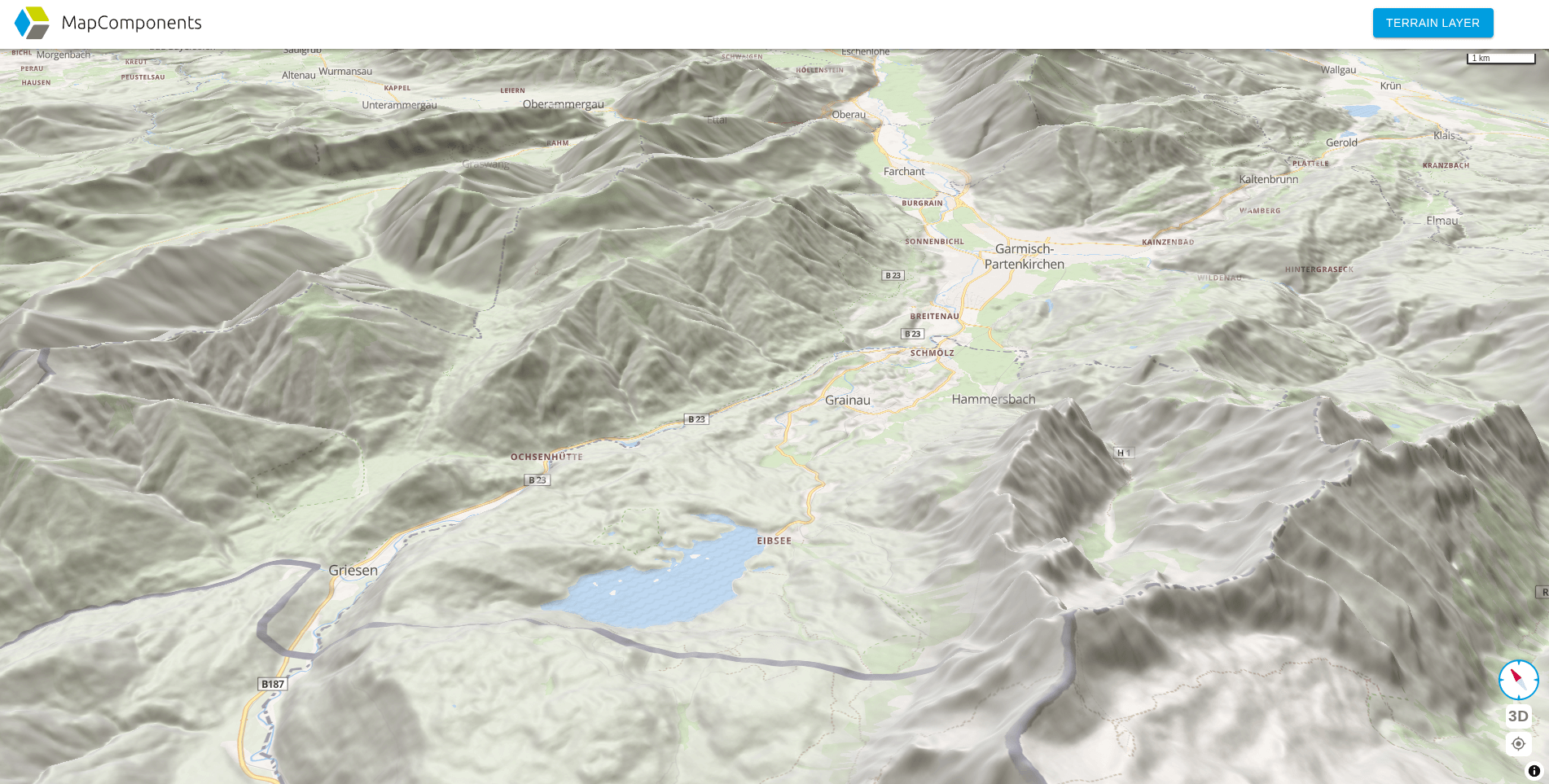 Digitale Geländemodelle (DGM) bilden häufig das unverzichtbare Fundament für überzeugende 3D-Visualisierungen. Sie stellen nicht nur die natürliche Topographie dar, sondern sind auch entscheidend für realistische Schatten- und Beleuchtungseffekte, die 3D-Szenen erst realistisch erscheinen lassen. MapComponents und MapLibre unterstützen seit langem die Integration von Geländedaten durch sogenannte TerrainLayer, die automatisch realistische Höhenprofile in die Kartenansicht einbetten.