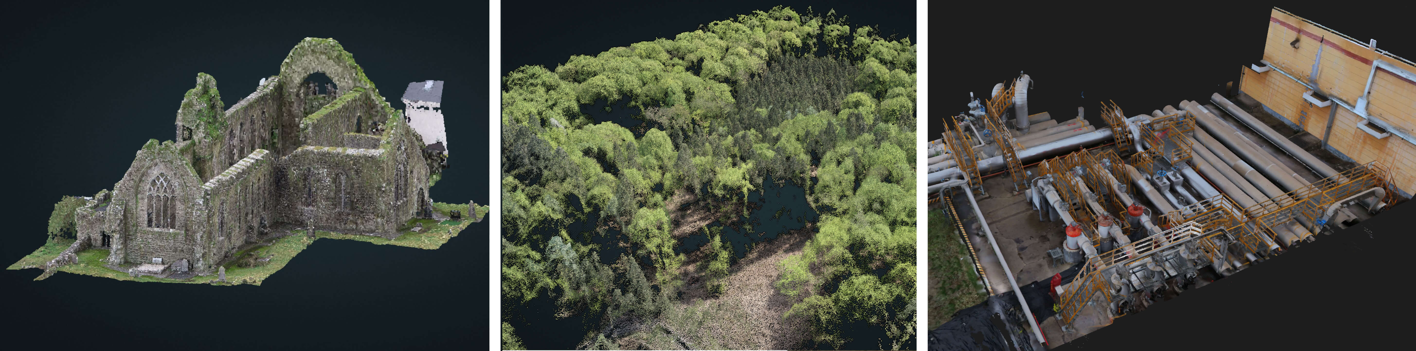 Praktische Anwendungsbeispiele für Point Clouds sind vielfältig: das Einscannen von Bauwerken für Renovierungsprojekte, die Dokumentation historischer Gebäude für Denkmalschutz oder das Monitoring von Waldbeständen zur Überwachung von Baumwachstum und Abholzung. In der Infrastruktur-Überwachung ermöglichen Point Clouds das Erkennen von Veränderungen an Brücken, Straßen oder anderen kritischen Bauwerken über die Zeit hinweg.
