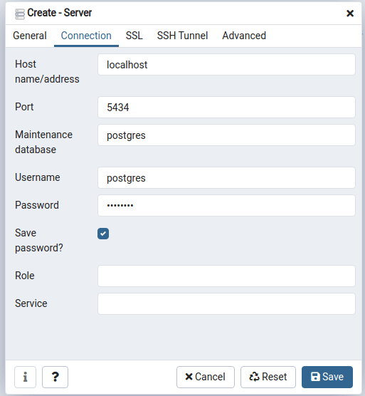 Danach können wir uns via localhost in pgAdmin mit dem Cluster verbinden.