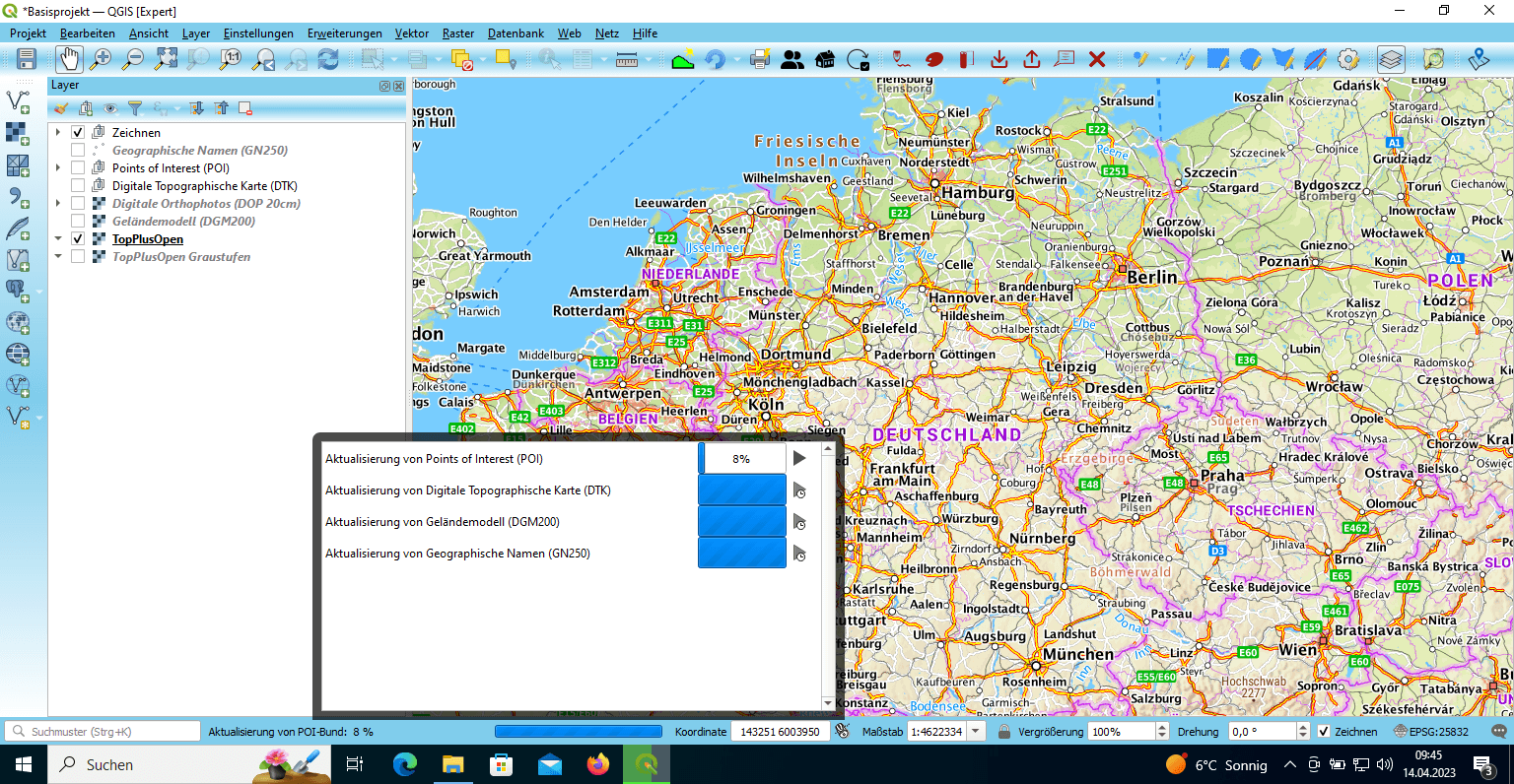 Die WhereGroup hat im Rahmen dieses Projekts ein PyQGIS-Plugin entwickelt, welches über die BKG-Webdienste eine Komplett- und Teilaktualisierung der einzelnen Datensätze ermöglicht.