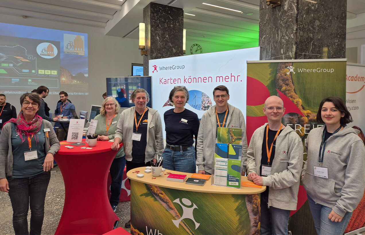 Klar, Sie treffen uns auf unseren eigenen Veranstaltungen. Doch wir treiben uns auch regelmäßig auf Messen, Konferenzen und Barcamps der Open-Source- und GIS-Community herum. Ob FOSSGIS, FOSS4G, QGIS-Meetings, AGIT oder lokale Formate: Wir präsentieren, diskutieren, teilen Wissen – und manchmal auch Kekse.